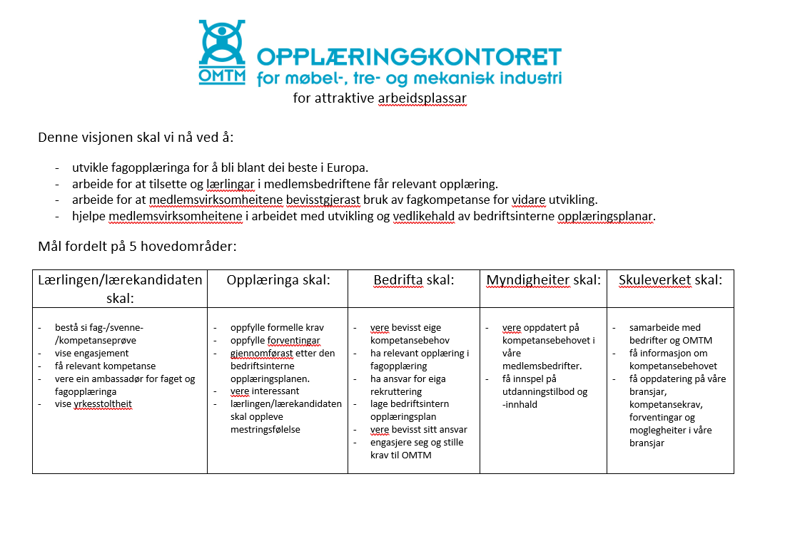 Vår hovudoppgåve å kvalitetssikre fagopplæringa som blir gitt i våre medlemsbedrifter. Vi har lærlingen i fokus og vi har som mål at lærlingen skal ha ei god læretid, både fagleg og mellommenneskeleg.
